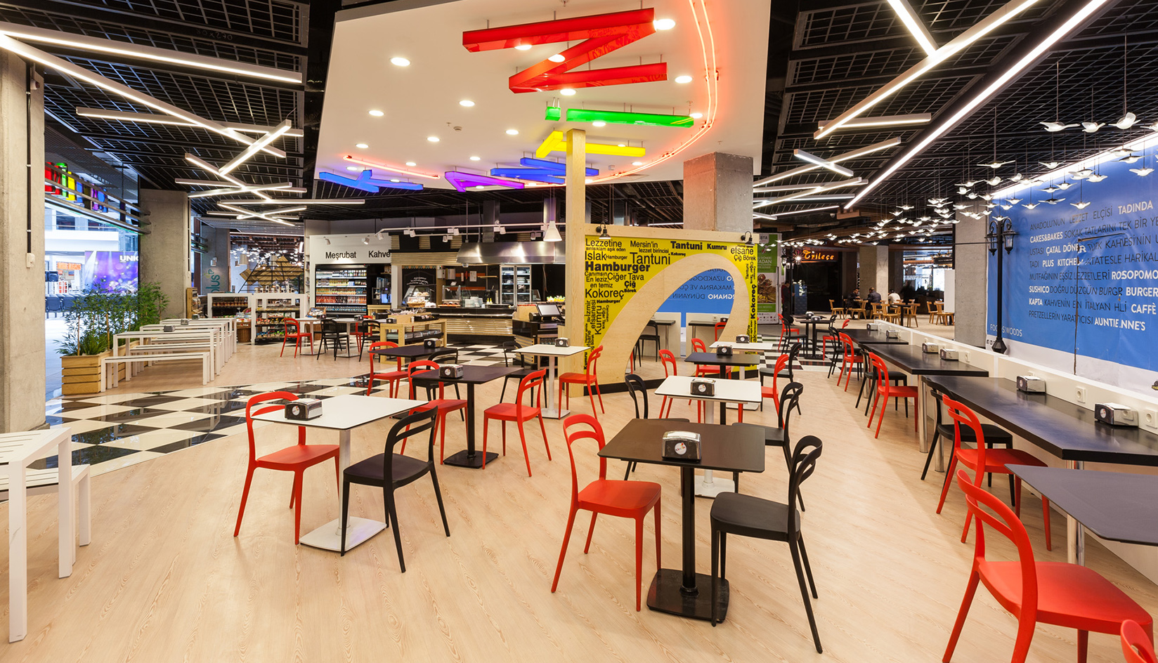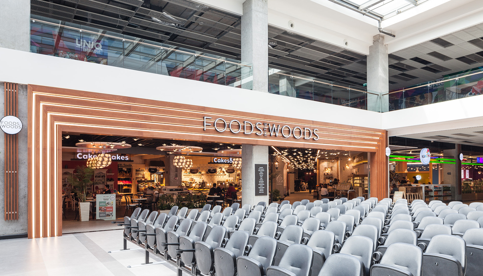 Located near the northern forests of Istanbul and just five minutes from Maslak’s business district, Uniq İstanbul is a mixed-use development with office spaces, Volkswagen Arena with a 5,800-seat capacity, restaurants, cafés, and exhibition areas. Yurdaer Architecture built the, office blocks entrance, common areas on the food hall level, as well as the cafés of Volkswagen Arena, Tickerdaze, Kantin, Wine&More, Rosso Pomodoro, and Tadında Anadolu.